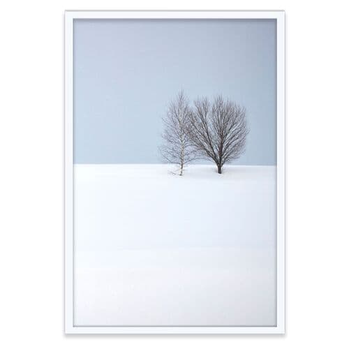 Pascal Shirley's image shows two trees emerging from a snowy landscape. It is printed on photo paper and framed in wood, ready to hang. Pascal Shirley, a freelance photographer from Los Angeles, studied photography at Prescott College and the School of Visual Arts in NYC, earning an MFA at the California College of the Arts in San Francisco. Honored as one of the PDN 30 emerging photographers in 2015, he lives in Venice Beach with his dog, Sailor.