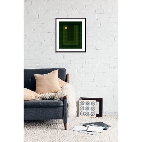 First showcased at One Kings Lane, David Grey's work presents a modern exploration of color and shape. The piece is printed on watercolor paper and set over a white mat within a deep pine frame, ready for display. David Grey, once Chair of the Graphic Design Department at Santa Fe University of Art and Design, merges studio art with graphic design. His work focuses on using mindfulness and contemplation as a basis for creativity. He founded the SunMountain School of Contemplative Art, publishes the Cottage Scholar, a contemplative design broadsheet, and teaches mindfulness and meditation.