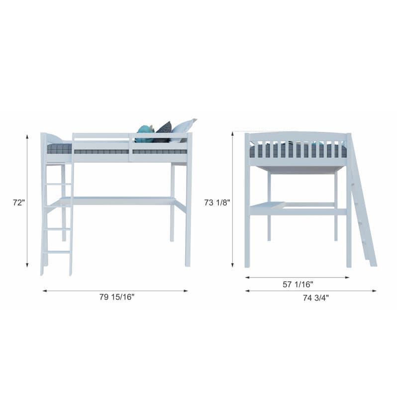 Daylin High Loft Bed with Desk and Storage, Solid Wood Loft Bed Frame with Stairs for Kids and Toddlers, White, Full. A good solution for small places and to free up floor space. Experience the luxury of a kid's loft bed crafted from premium, robust solid wood. With our multifunctional toddler bed frame, create a cozy and elevated sleeping area in your home. This loft bed with a desk can store children's toys and books, craft materials, and more. This creative toddler loft bed design could save your space and provide you with more flexible usage. This high loft bed for kids is a great way to maximize the floor space in your child's bedroom. The room underneath can be used as storage, a play area, a gaming center, or spacing for a visiting guest. Your child will love the free space this kid's bed creates to play, study, and spend time! Revel in the peace of mind knowing your child is safe and secure, nestled within the protective embrace of our toddler bed with rails all around. With no requirement for a box spring, rest assured your child can enjoy a comfortable and worry-free sleep, leaving parents free of concern throughout the night. Enjoy the hassle-free convenience of assembling our kid's bed frame effortlessly in just a few straightforward steps. Each component of the frame is meticulously labeled and accompanied by a clear, user-friendly manual, ensuring a seamless construction process. Experience peace of mind with our Worry-Free 6 Months Limited Warranty, reflecting our unwavering commitment to delivering unparalleled quality that stands unrivaled in the market.
