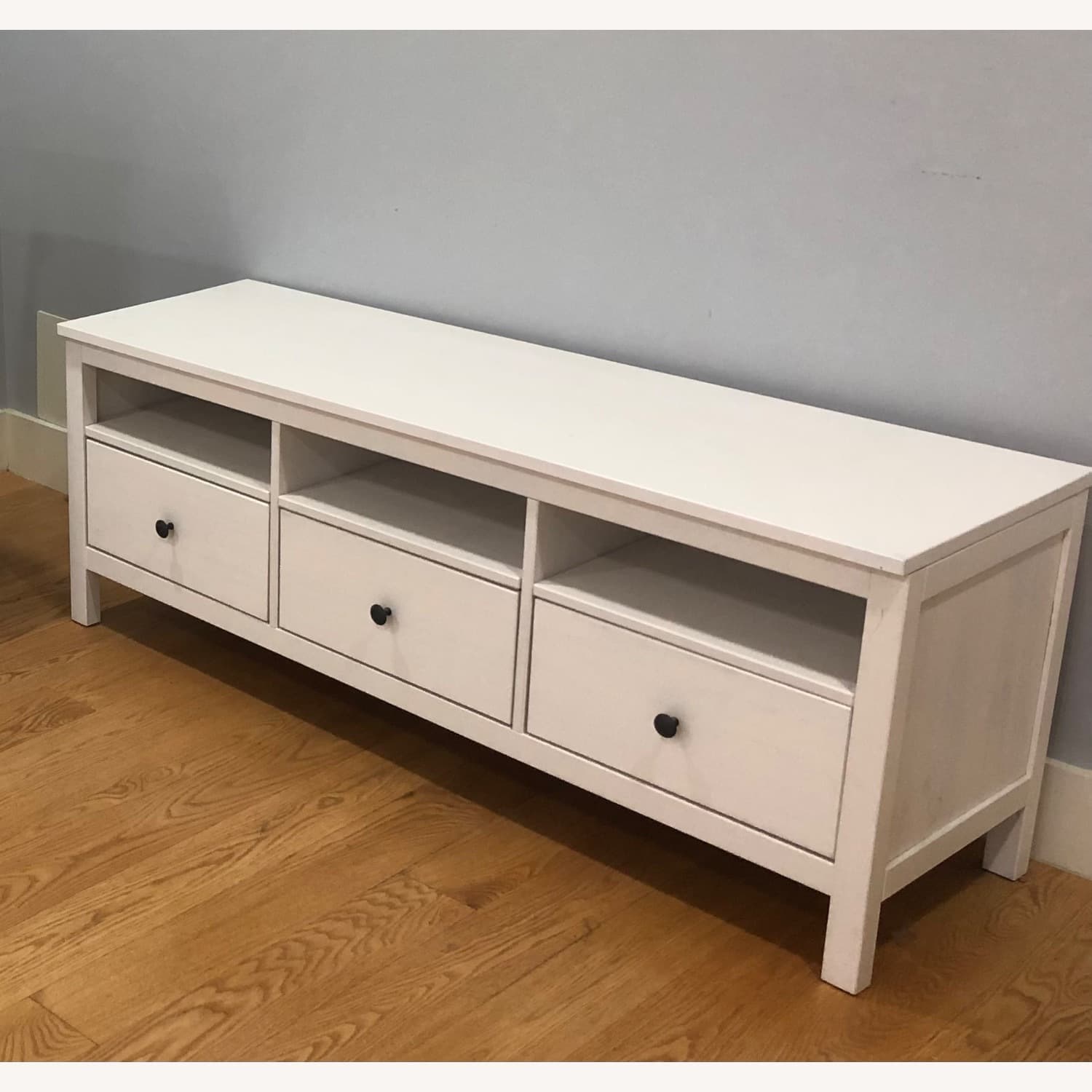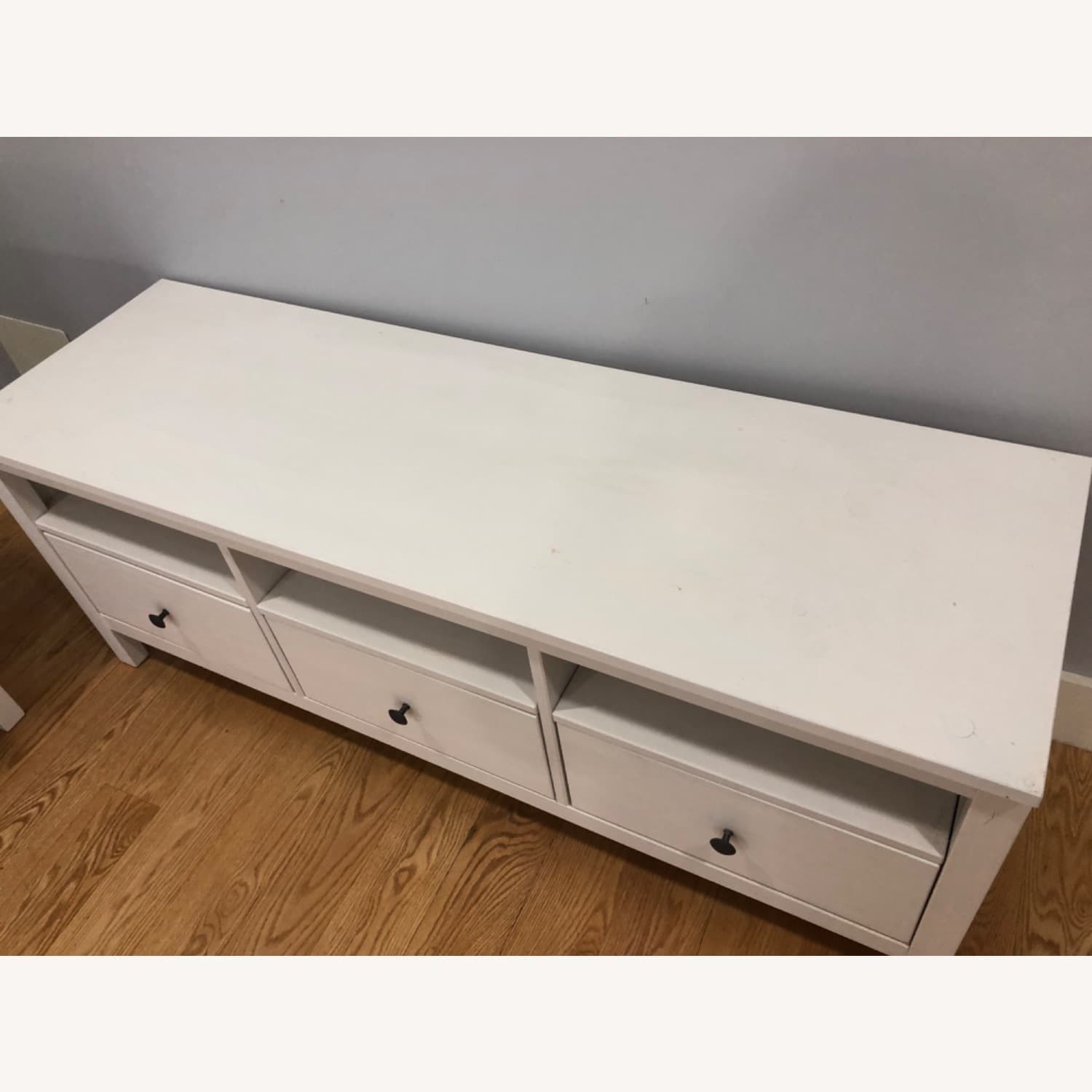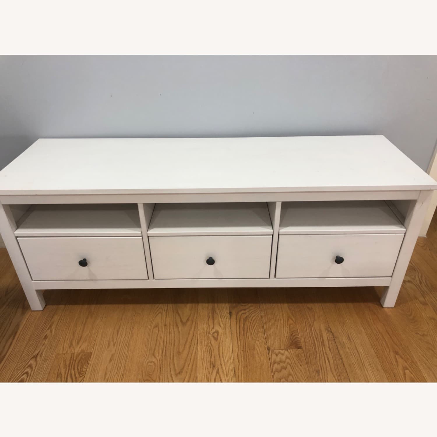 Beautiful well-loved IKEA tv unit in white with minor blemishes, scratches and stains, but otherwise in good condition. Owned for 5 years and will last for more years to come!