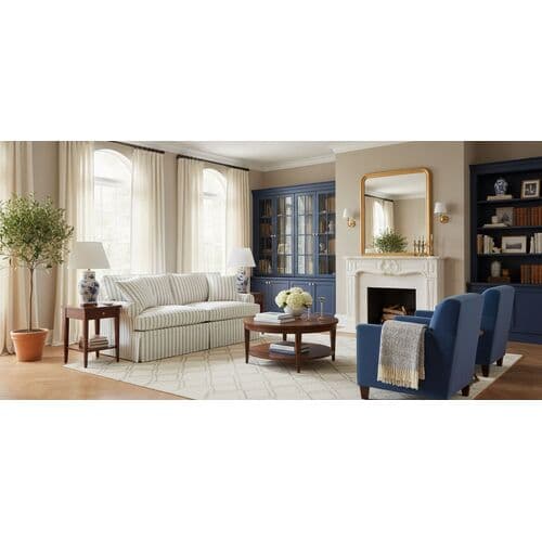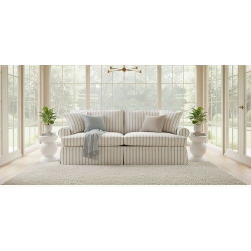 Maya Sofa - Stripe Sunbrella - Miles Talbott - Handcrafted | Couch, Settee - Blue - Comfortable, Durable
