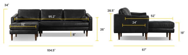 Poly and Bark Napa Left Sectional Sofa, Onyx Black