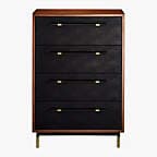 Oberlin 4-Drawer Tall Black Vegan Leather and Wood Dresser