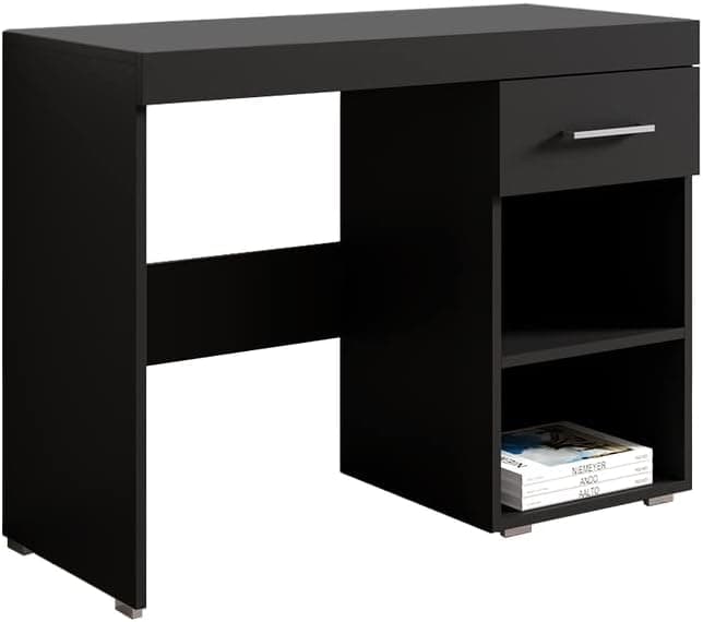 Meble Furniture 39" Perth Computer Desk with One Drawer & Two Shelves - Modern Rectangular Desk with Leg Space - Durable & Lightweight Wooden Desk in Matte Finish - Black