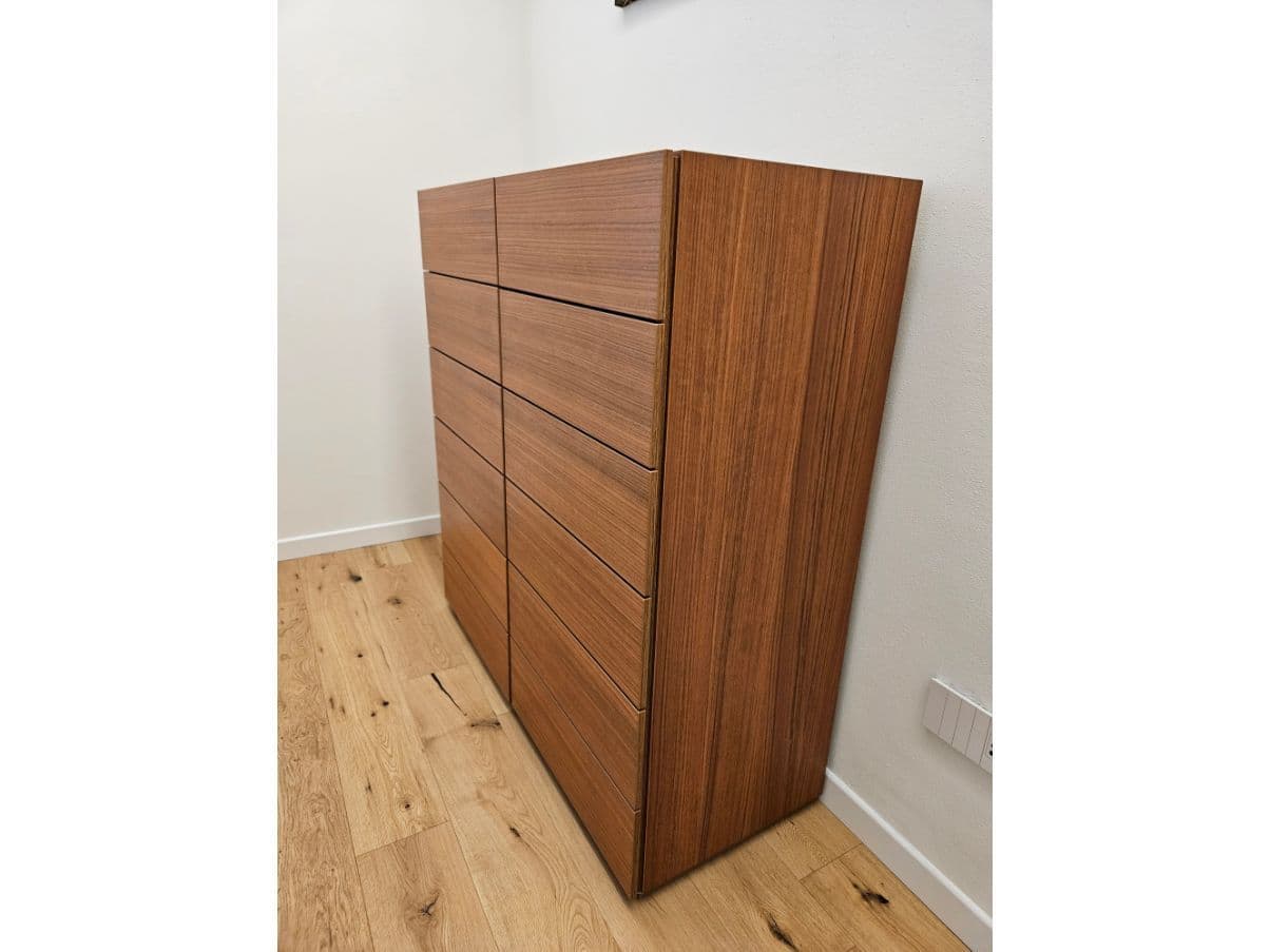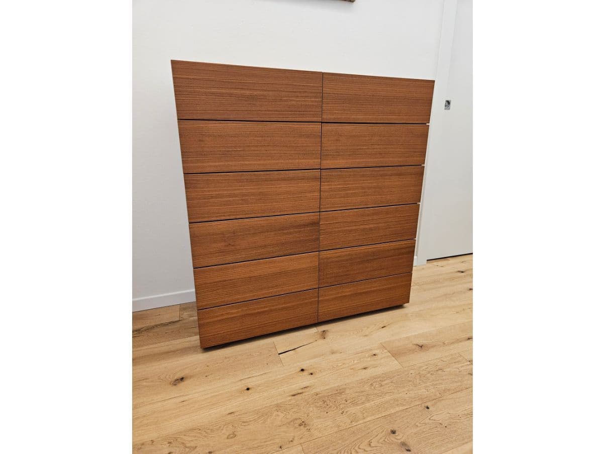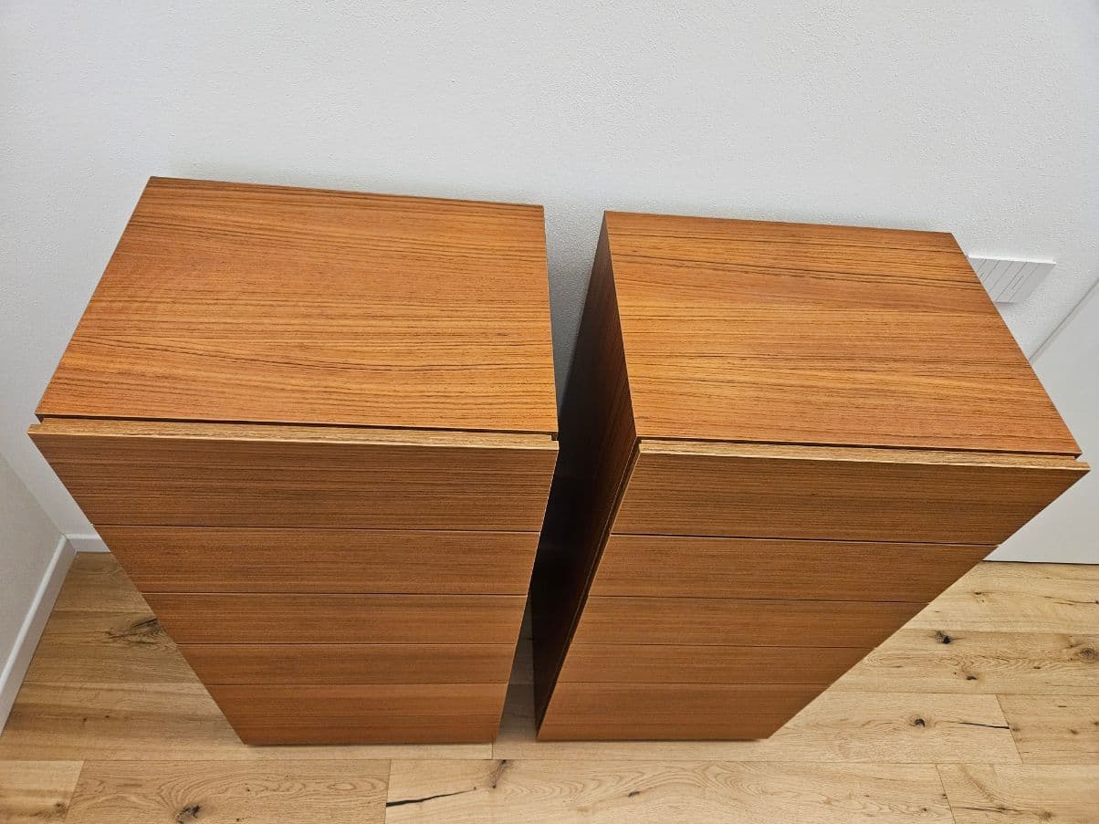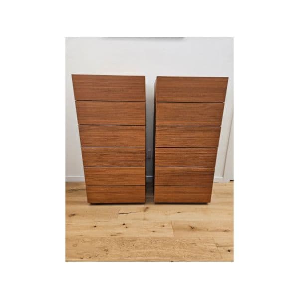 Weekly tables, two pieces in number, perfectly maintained, cherry coloured, in wood. Consisting of 6 drawers each.