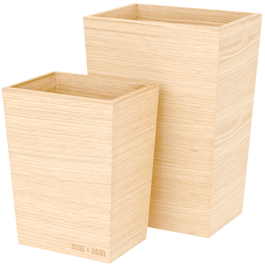 Versione più piccola alta 280 mm. I bordi squadrati e le giunture pulite conferiscono un aspetto contemporaneo a questo cestino di dimensioni pratiche. La forma rettangolare lo aiuta a inserirsi più facilmente quando lo spazio è prezioso. Perfetto per l'uso in bagni, camere da letto, ufficio o accanto a una toletta. Capacità 6 litri. Realizzato con quercia bianca americana e impiallacciatura di quercia naturali raccolte in modo sostenibile, selezionate per il loro colore caldo, il bellissimo motivo a venature e la tradizionale durabilità del legno duro. Tutti i bordi sembrano nitidi ma sono accuratamente levigati a mano per renderli morbidi al tatto. Rifinito con una lacca opaca resistente all'acqua. I piedini in silicone impediscono che scivoli. Finitura pulita. Design di Lincoln Rivers. 220 mm di larghezza x 165 mm di profondità x 280 mm di altezza