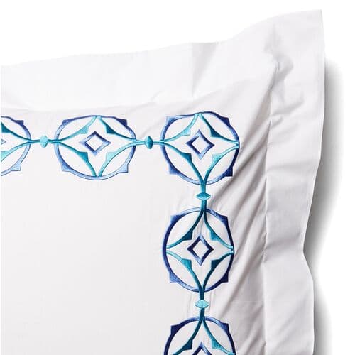 Tropez Sham - Turquoise - Hamburg House - White