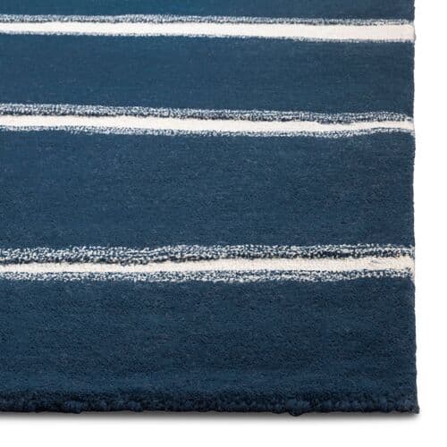 Featuring a casual and modern design, the diffused bands of this chalk-stripe motif spread over a wool canvas, hand-tufted in India. The intricate painterly stripe, made with five colors, has a hand-drawn appearance. This rug introduces a subtle pattern and color, ideal for spaces leaning towards minimalism.