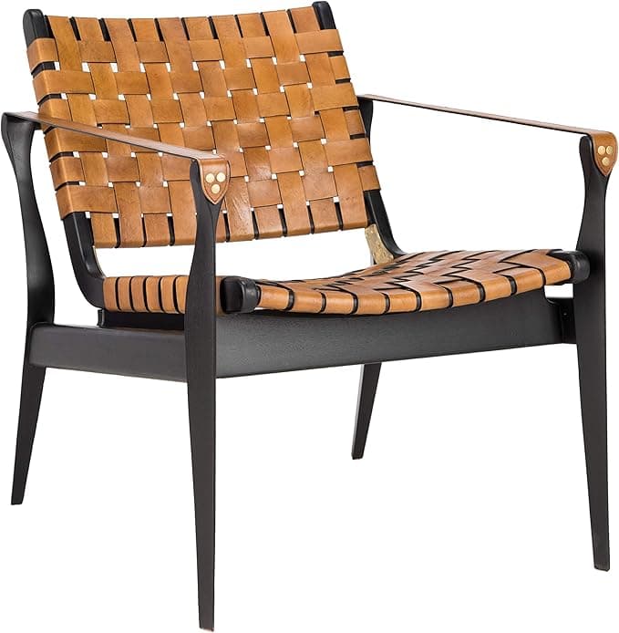 Safavieh Couture Dilan Brown and Black Woven Leather Safari Chair
