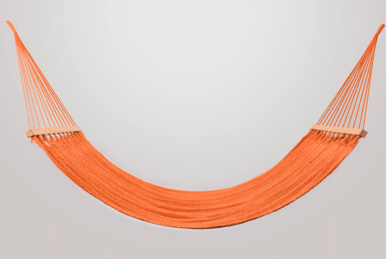 A hammock designed for your ultimate comfort and ready to be used indoors or outdoors. Perfect for napping, snuggling, adventure or just relaxing. Color: Vivid Orange. Weight Capacity: Fits 2 people up to 350 lbs. Handmade hammock weaved of high quality, natural organic cotton that is soft and resistant. Spreader bar made from renewable wood; natural wood color may vary. Every component used in our hammocks is friendly to the environment. Does not include Hanging Hardware, Hammock Straps or Stand. Read our Hanging Instructions to install. Learn more about our Care Instructions, Shipping, Return and Privacy Policy.