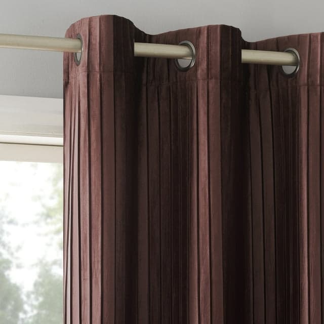 Featuring a decadent pleated velvet, Sun Zero Cascade Curtain Panels infuse luxe appeal into any living space. Equipped with built-in metal grommets for easy hanging on standard curtain rods up to 1.5" in diameter. Sun Zero Blackout technology blocks out most outside light, offers outside noise reduction by up to 30%, and decreases energy lost through your windows by up to 40%. Comfort is optimized with thermal properties that help keep summer heat and winter chill out of your home. Hang in your living room for enhanced privacy, or in your bedroom for a sounder, more uninterrupted sleep. Sold as individual panels measuring 40" width by 96" length. Measure carefully before selecting your desired size and quantity. Machine wash cold on gentle cycle. Use non-chlorine bleach when needed. Tumble dry on low heat, using a cool iron as needed.