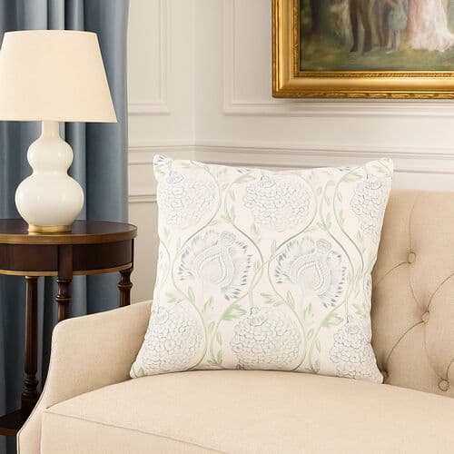 Ranjit Floral Pillow | Cushion, Bolster - Green - Reversible, Insert Included