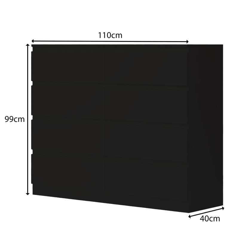 Carlton 8 Drawer Chest Of Drawers: 110cm Wide. 4 + 4 Configuration. Matt Finish. Scratch Resistant. Modern No Handle Design. 12cm Deep Drawers