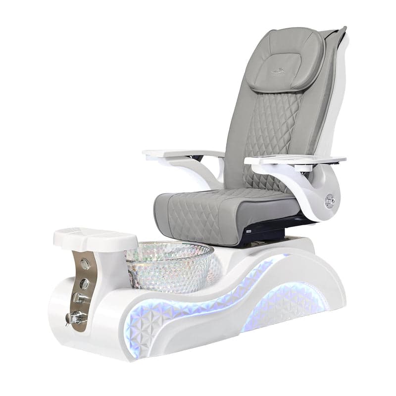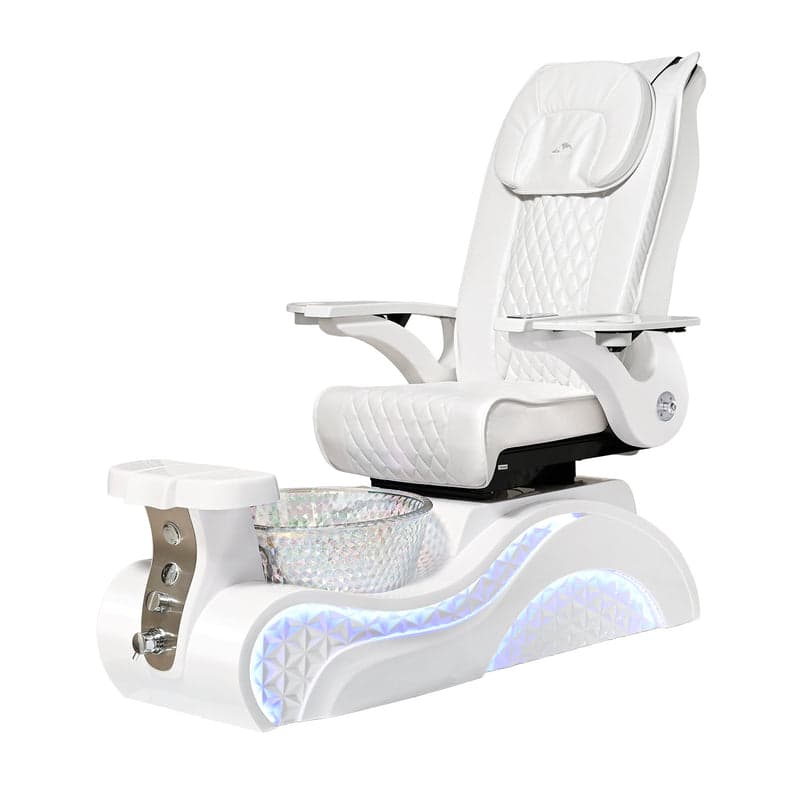Experience unrivaled luxury and style with the Lucent II pedicure chair. Featuring stunning LED lighting and textured diamond shadow sides, this chair offers the ultimate spa experience for your nail salon guests. Made with diamond-quilted PU leather, the Lucent II spa pedicure chair boasts a magnificent crystal basin with an iridescent "Mother of Pearl" finish that will catch anyone's eye. Give your clients the ultimate pampering with the trend-setting and opulent Lucent II pedicure spa chair.