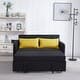Upgrade your living room with this Modern Sofa with Pull-Out Sleeper Bed Adjustable Backrest. Its multifunctional design allows you to easily convert it into a comfortable bed by simply pulling out the front part and lowering the backrest. The high-quality foam and spring support, combined with soft fabric, provide ultimate comfort whether you're sitting or sleeping. This sofa bed also features a USB socket conveniently located on the left arm for charging your devices. With easy assembly and a sturdy metal and wood frame, this sofa bed is a perfect fit for any home.