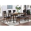 New Classic Furniture Gia 6Pc Rubberwood Dining Set with 60 in. Table, Upholstered Bench and 4 Dining Chairs, Brown