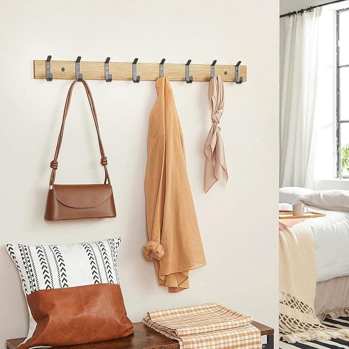 ACAZA Wall Coat Rack with 8 Hooks for Jackets, Industrial Design Vintage Oak Wood with Metal, Dimensions 88 x 6.5 x 1.5 cm