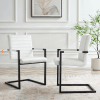 Bring contemporary intrigue and glam deco style to your dining space with the Savoy Performance Velvet Dining Chairs – Set of 2. Stain-resistant performance velvet upholstery makes this armchair perfect for the dining room or living space, while horizontal channel tufting brings retro modern detail. This accent chair features a sled base crafted with square tubular powder-coated metal, non-marking foot caps, and padded armrests. Dense foam padding offers a supportive seat while dining or relaxing. Chair Weight Capacity: 300 lbs.