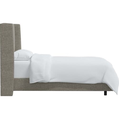 Transform your bedroom into a retreat with this USA-made wingback bed, upholstered in adaptable woven fabric. The padded headboard is perfect for those who enjoy reading or watching TV in bed. Requires a box spring and mattress.