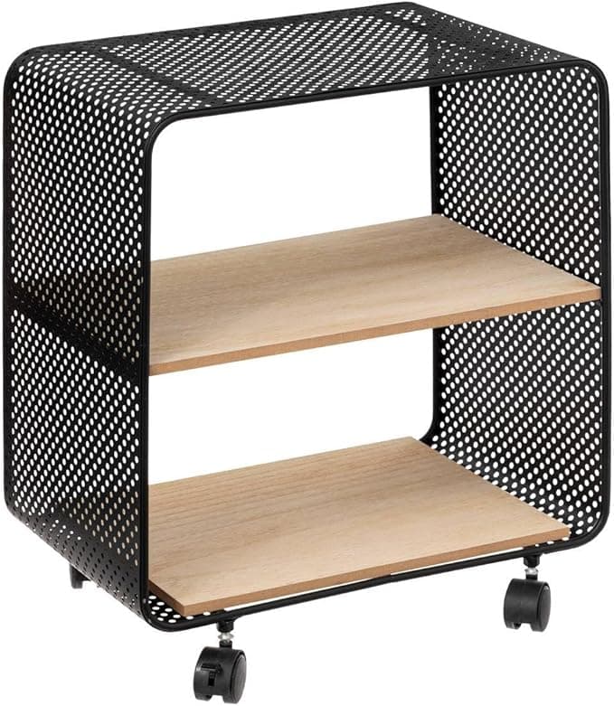 Five - 2 Compartment Shelving Unit on Metal and Wood Wheels H 51 cm Product dimensions: L 43 x D 32 x H 51 cm. Material: metal and MDF wood. Product weight: 4.8 kg. Model : metal