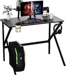 Rcynview Mesa Gaming Computadora, Ergonómico Escritorio Gaming de Ordenador, Escritorios con Tablero de Fibra de Carbono, Mesa Gamer con Portavasos y Gancho, 100cm × 55cm, Negro Escritorio Gamer : Amazon.es: Hogar y cocina