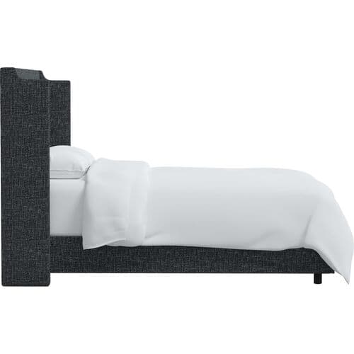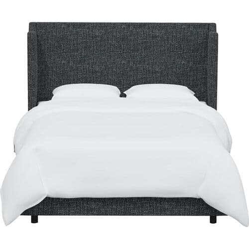 With notched wings and woven upholstery, this USA-made bed adds timeless sophistication to any bedroom. The thickly cushioned headboard is perfect for those who enjoy reading or watching TV in bed. Requires a mattress and box spring.