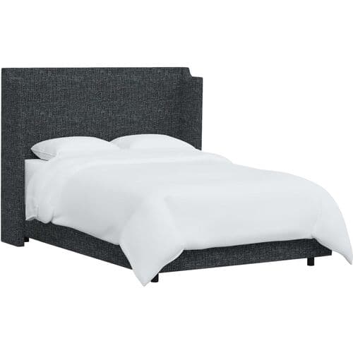 Crafted in the USA, this bed features notched wings and woven upholstery, offering a timeless addition to any bedroom. Its cushioned headboard is ideal for relaxing with a book or watching TV. Requires a mattress and box spring.