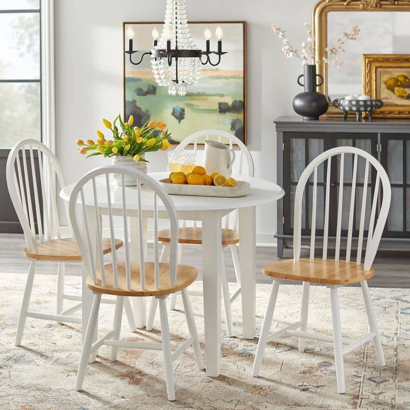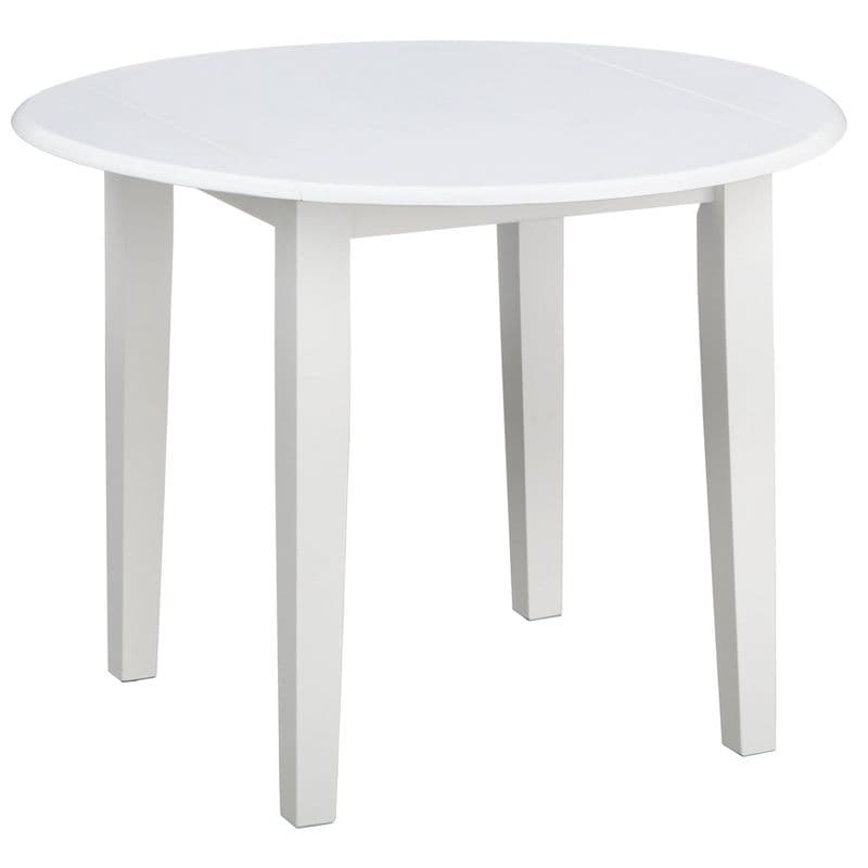 Versatility allows you to expand seating in your dining space with the Chadwick Drop Leaf Dining Table from Buylateral. Perfectly sized for a breakfast nook or smaller area, the two drop leaves easily extends for guest or lowers when you need to maximize space. Each individual leaf is 7 inches, expanding the table width to a 40-inch diameter. Constructed of solid rubberwood in a white finish, this table easily complements almost any style of room décor.