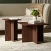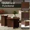 Modern Walnut Fluted Square Coffee Table Set (2-Piece) - Solid Oak Base