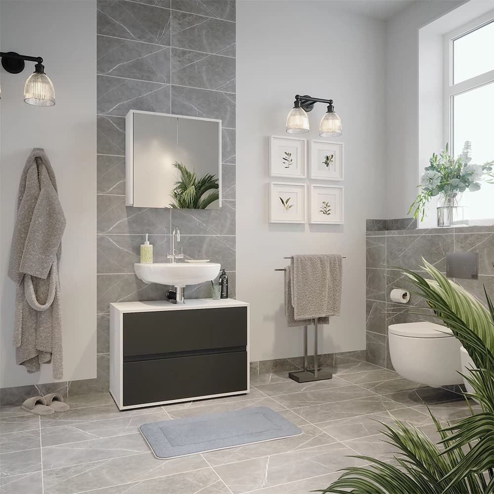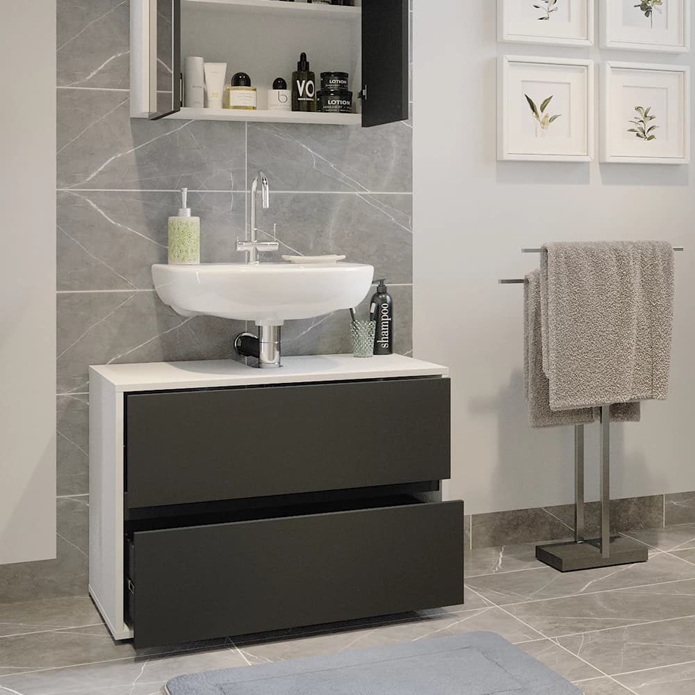 Vicco Wastafelonderkast "Maltin", Wit/antraciet/Wit, 80.2 x 58.2 cm met twee grote laden