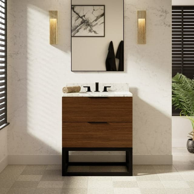 Mia 30" Bathroom Vanity with Walnut Cabinet and Carrara Marble Top