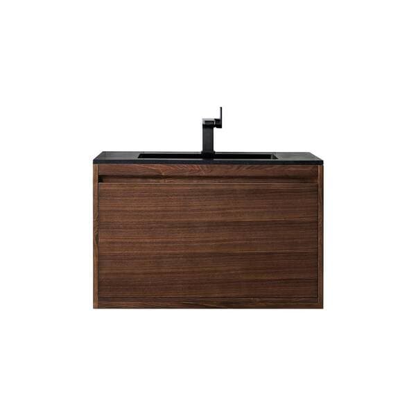 James Martin Vanities Mantova 35.4 in. W x 18.1 in. D x 20.6 in. H Single Bath Vanity Mid-Century Walnut & Charcoal Black Composite Stone Top