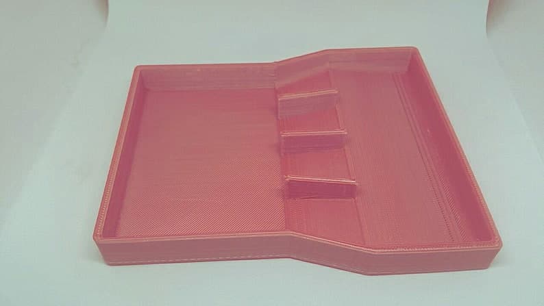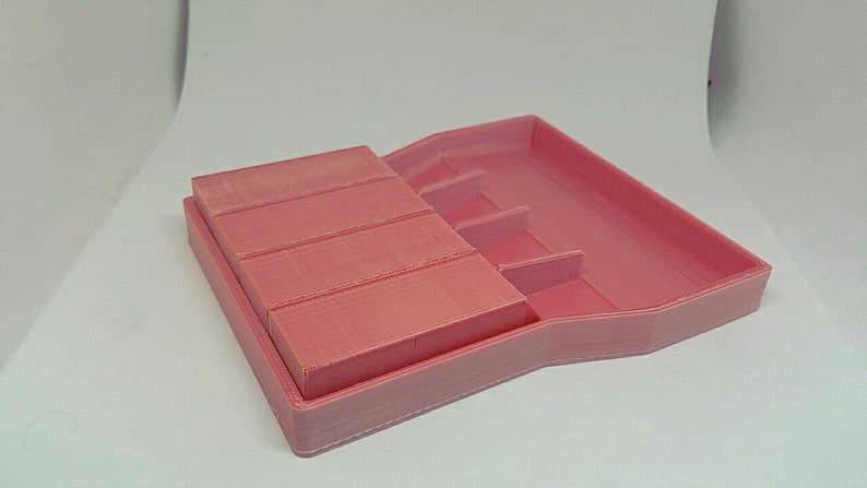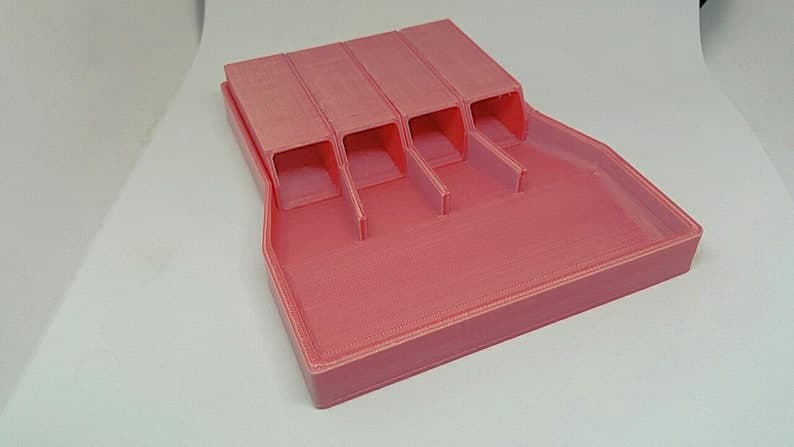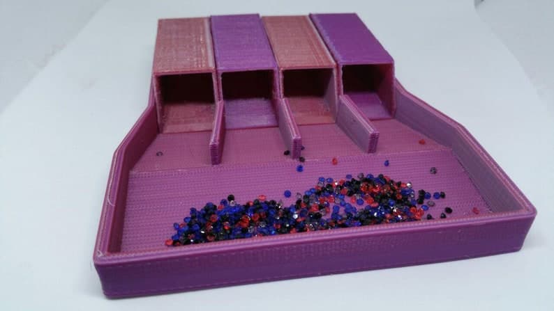 This is a custom designed bead sorter that can be used for small beads, gems, nail art, and many other mixed items! It is 100% 3D printed, and allows you to sort up to 4 different things at once. It measures 5 1/2 inches by 4 1/3 (approx) at its widest. Each tube is 2 2/5 inches long and 3/4 of an inch wide inside. The main area is slanted towards the wall with rounded corners and edges to keep beads from getting stuck. There is a ridge at the top of the ramp to keep beads from falling back into the main area. Each sorter can have a personalized color for the tubes and the base. You can choose colors from the list OR ask for your own custom color! When choosing a custom color, the item will have slight variations throughout the objects as this is how the printer works