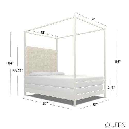 Amalfi Canopy Bed - White, Upholstered Headboard | Poster Bed, Draped Bed - Exclusive