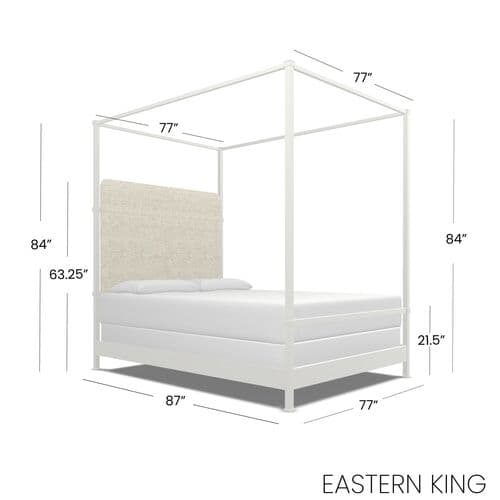 Amalfi Canopy Bed - White, Upholstered Headboard | Poster Bed, Draped Bed - Exclusive