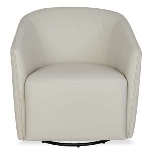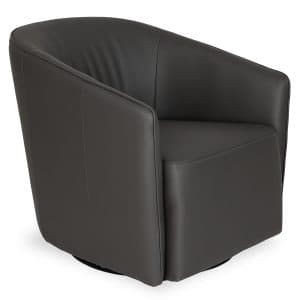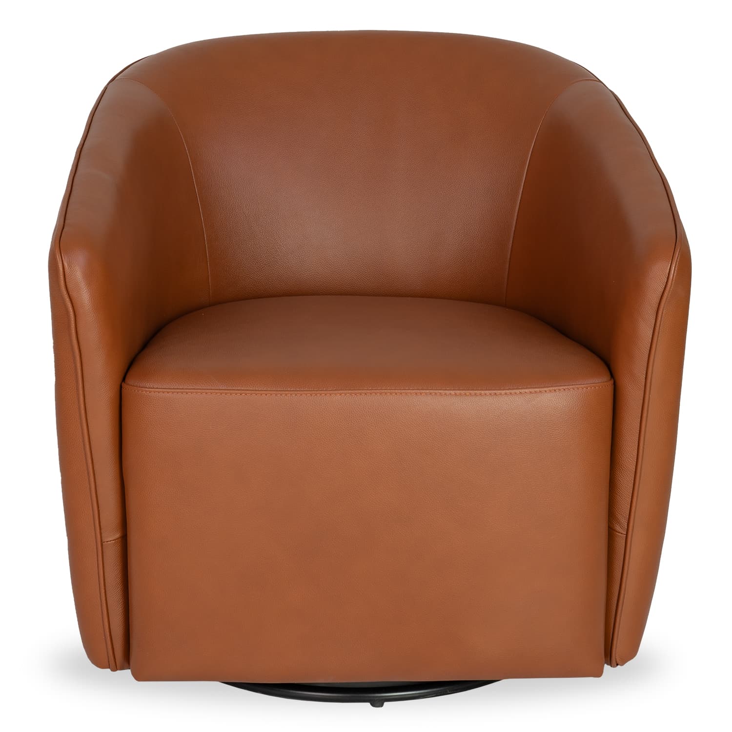 Take your relaxation to a whole new level with the Lotus Swivel Glider Chair, available with cognac leather upholstery. Lotus' minimalist, structured look is softened by a rounded frame and sloped arms that subtly envelop. This chair adapts to any design environment and to the movement of the body, allowing you to easily customize your comfort.