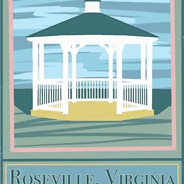 A cute little travel sticker for Roseville, Virginia, home of our favorite secret spy school. Featuring the infamous gazebo where many clandestine missions were held:) Enjoy!