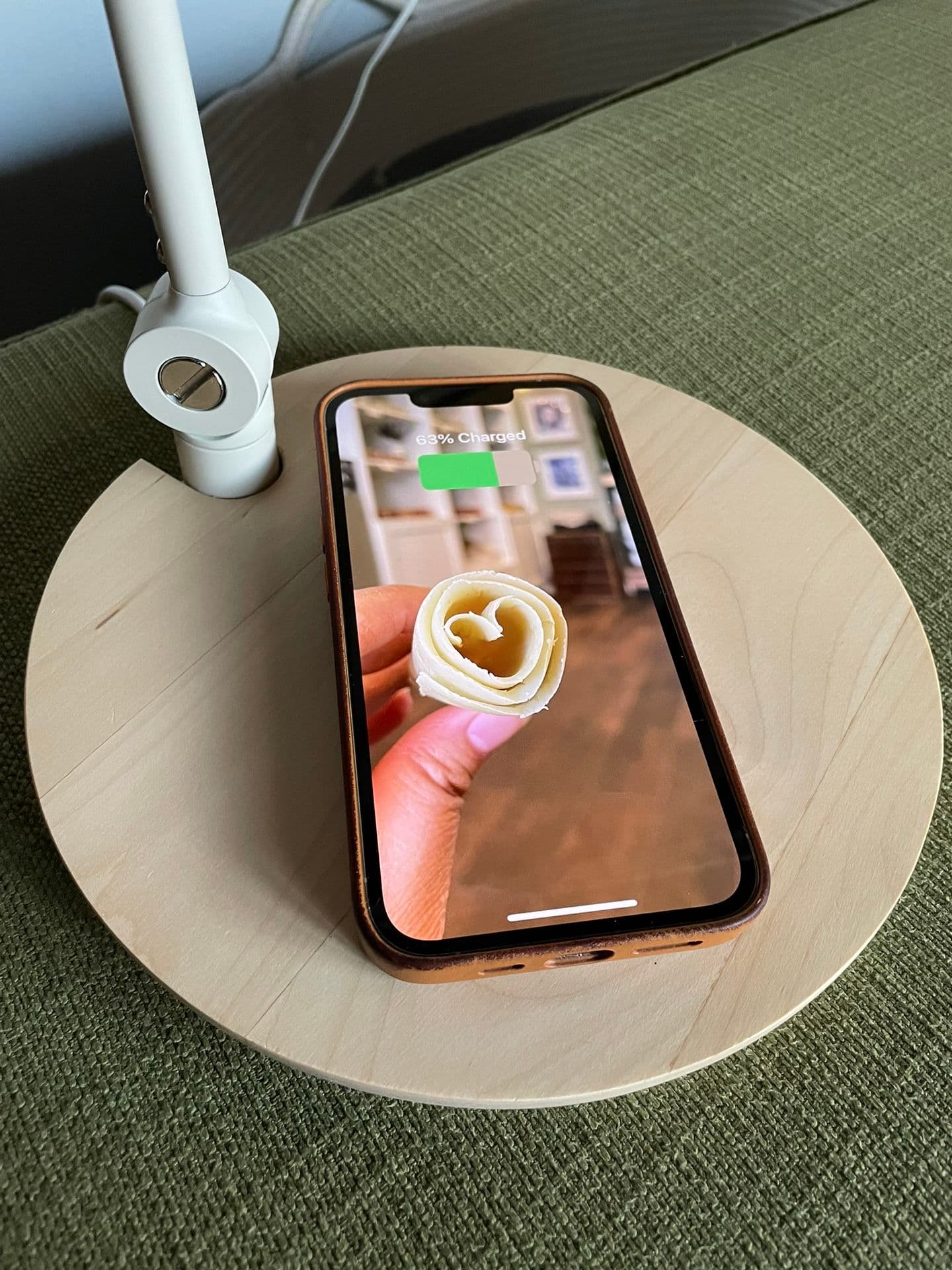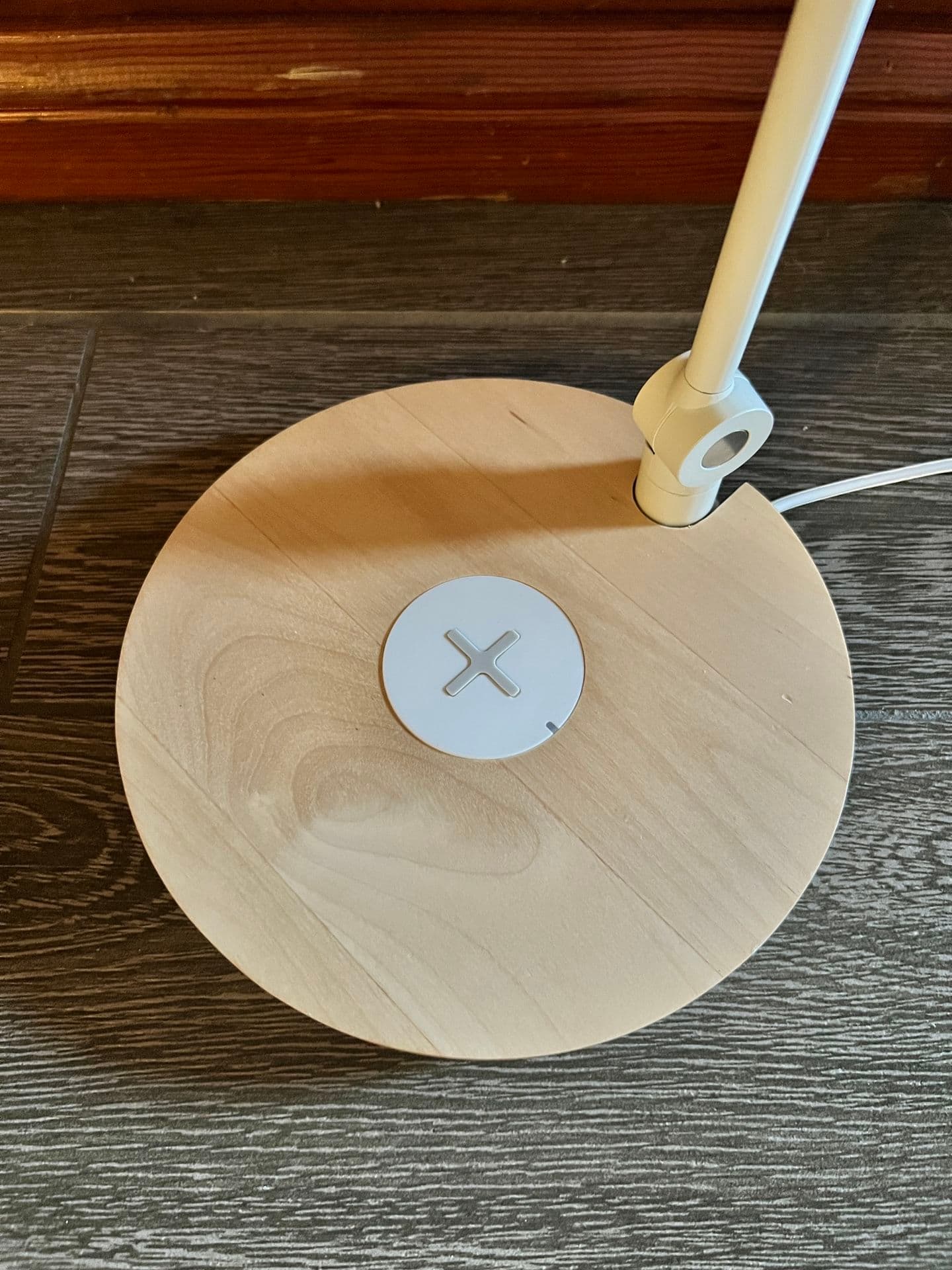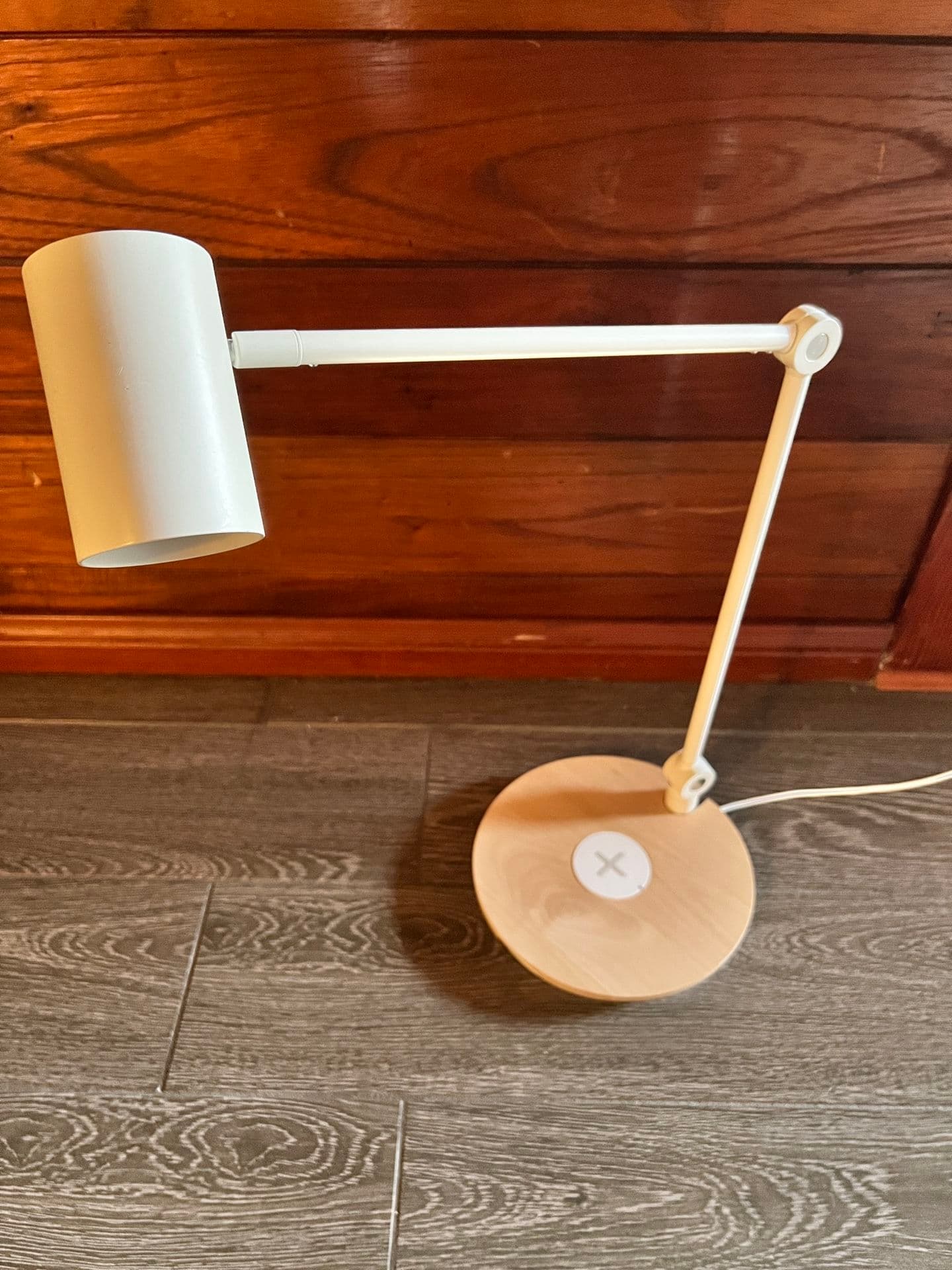 Very good condition with some minor nicks/scratches. Works great. Very bright reading/work light. Base will charge iPhone wirelessly.