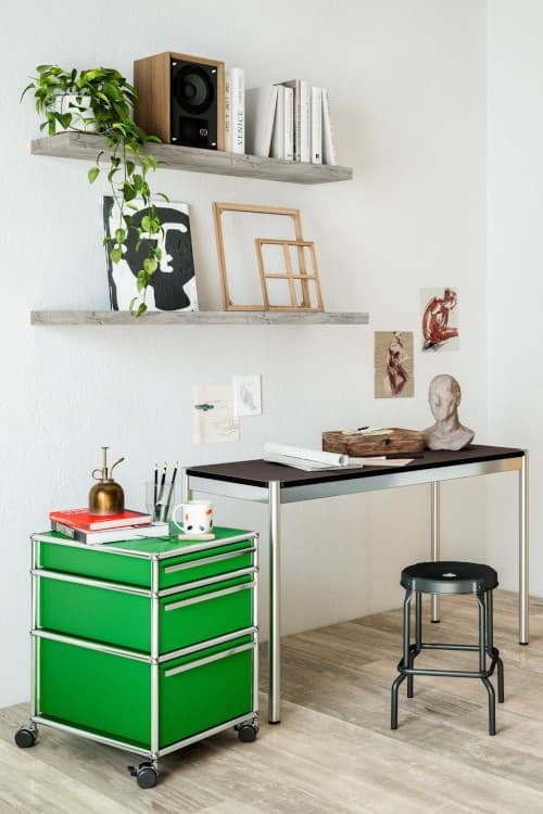 With unparalleled versatility and a clean, modern design, this 500mm deep USM Haller narrow table is an elegant and practical solution in a small space to benefit from a real workstation. 1250 x 500 x h740 mm