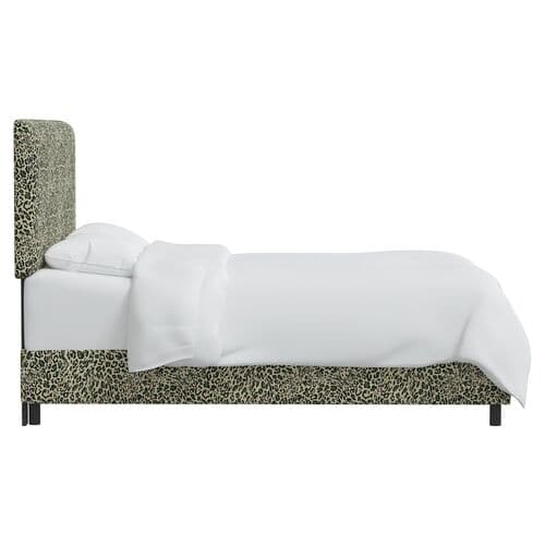 Leopard-print upholstery adds timeless elegance to this streamlined bed. Crafted in the USA, the bed comes with a generously padded headboard, offering comfortable support for reading or watching TV.