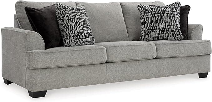 Benjara Angel 93 Inch Sofa with 4 Accent Throw Pillows, Soft Dark Polyester, Gray, Black and White