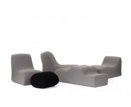 This sofa was designed by the Chilean designer Roberto Matta then produced by Gavina from 1966 to 1968 then Knoll International from 1968 to 1974. This living room set is composed of 5 elements in thermoformed foam, newly covered with the gray and black terry fabric from our partner Maison Thevenon. A playful design for this sofa with organic shapes, it will take many possible positions to appropriate the space. It goes with the snap of a finger from a wall sculpture where all the elements are nested to a complete living room including a two-seater bench, three armchairs and a pouf. The Malitte, named after the designer's wife: Malitte Pope, is part of the permanent collection of the MoMa (Museum of Modern Art) in New York.