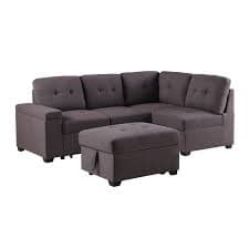 Lilola Home - Katie Brown Linen Sleeper Sectional Sofa with Storage Ottoman, Storage Arm - 89137