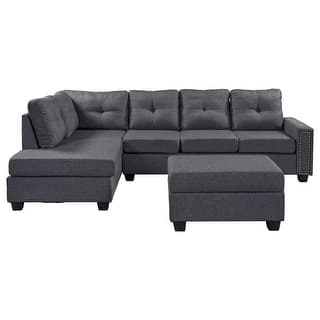 Classic Style Sectional: upholstered contemporary sofa design made of soft linen fabrics can be arranged and reconfigurable in various ways for small or large spacious living areas to accommodate different spaces. Convertible Design: This set includes a left corner seat, right facing corner seat, and a removable ottoman. The chaise of the couch can be either right or left side. You can build the position and shape you like. Comfortable Cushions: Our sofa is soft with comfy high density foam cushions for ultimate comfort and support. Optimal softness with extra padded cushioning gives sofa relaxing feeling. Relax all day in your living room while watching TV or taking an afternoon nap. Strong & Sturdy: Constructed with hardwood frame, the couch is durable to provide long service life, not easy to deform and crack. Overall Dimensions 108.1"(L) x72.4"(W) x35.8"(H) up to 4 or 5 people, sofa wt. capacity up to 1100lbs. Two Cup Holders and Storage Ottoman: 2 convenient cup holder design on seat back to place drinks and cups. The convenient space in the storage ottoman provides the perfect place to put blankets or magazines.