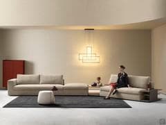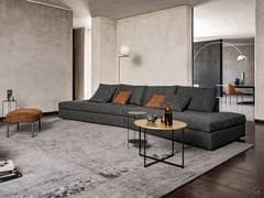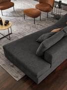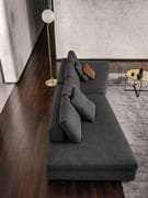 Holiday est un canapé composable avec péninsule inclinée, méridienne, modules d'angle et linéaires hautement personnalisable et polyvalent, offrant de nombreuses solutions de configuration adaptées à tous les styles et à toute nécessité d'espace d'un salon contemporain.Les configurations possibles comprennent, outre les classiques canapés linéaires à 2 ou 3 places, en L et avec chaise longue, de grandes compositions déstructurées de canapé XXL de 4, jusqu'à 8 ou 10 places, avec des modules panoramiques ouverts et des ottomans, pour concrétiser une idée plus ouverte et plus chaleureuse de la convivialité et de l'espace de vie contemporain. Holiday peut être combiné avec la table basse du même nom, qui peut être placée en bout de canapé ou entre deux assises. L'attention portée à l'aspect dimensionnel va de pair avec la recherche formelle sur le confort et l'équilibre des proportions d'un canapé au sol à la fois essentiel et accueillant : assises larges, pieds bas cachés, larges accoudoirs rembourrés reliés à un dossier bas, idéal au beau milieu du salon. La rigueur géométrique de la version sans coussins de dossier se fait plus douce dans la version avec de grands coussins, qui peut également être complétée par un coussin optionnel à l'arrière du dossier. Les coussins sont garnis d'un mélange de duvet d'oie et de fibres, avec une doublure en coton anti-plumes qui en empêche la dispersion, ainsi que la formation d'agglomérats ; l'insert en mousse de différentes densités apporte du soutien et de la résistance. Enfin, Holiday peut être personnalisé dans une large gamme de couleurs et de revêtements allant des tissus unis aux textiles mélangés et bigarrés, du lin et du coton naturels aux tissus techniques antitaches, des microfibres au similicuir, et même au velours élégant et au cuir véritable.