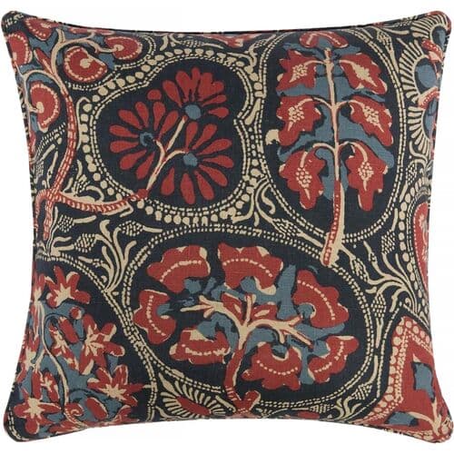 Cochin Botanical Linen Pillow | Cushion, Bolster - Blue