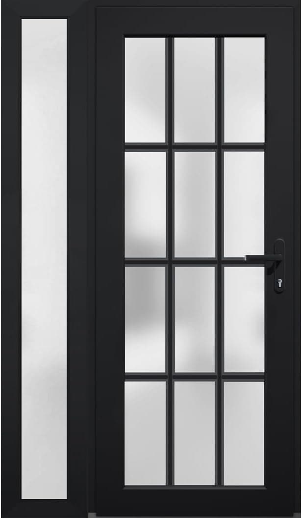 Front Exterior Prehung Fiberglass Door Frosted Glass/Manux 8312 Matte Black/Side Exterior Window/Office Commercial and Residential Doors Entrance Patio Garage-W36+12" x H80-Left-hand Inswing