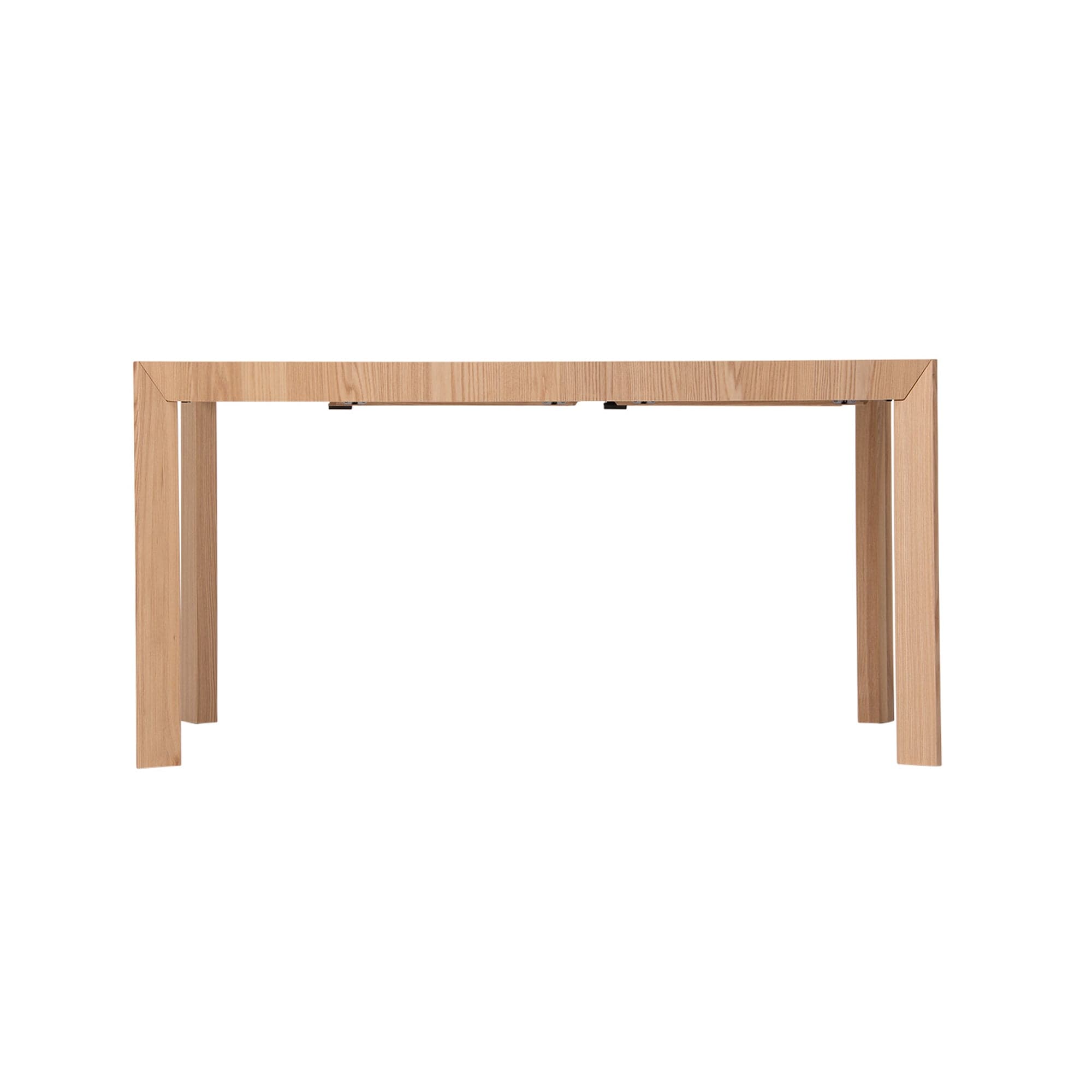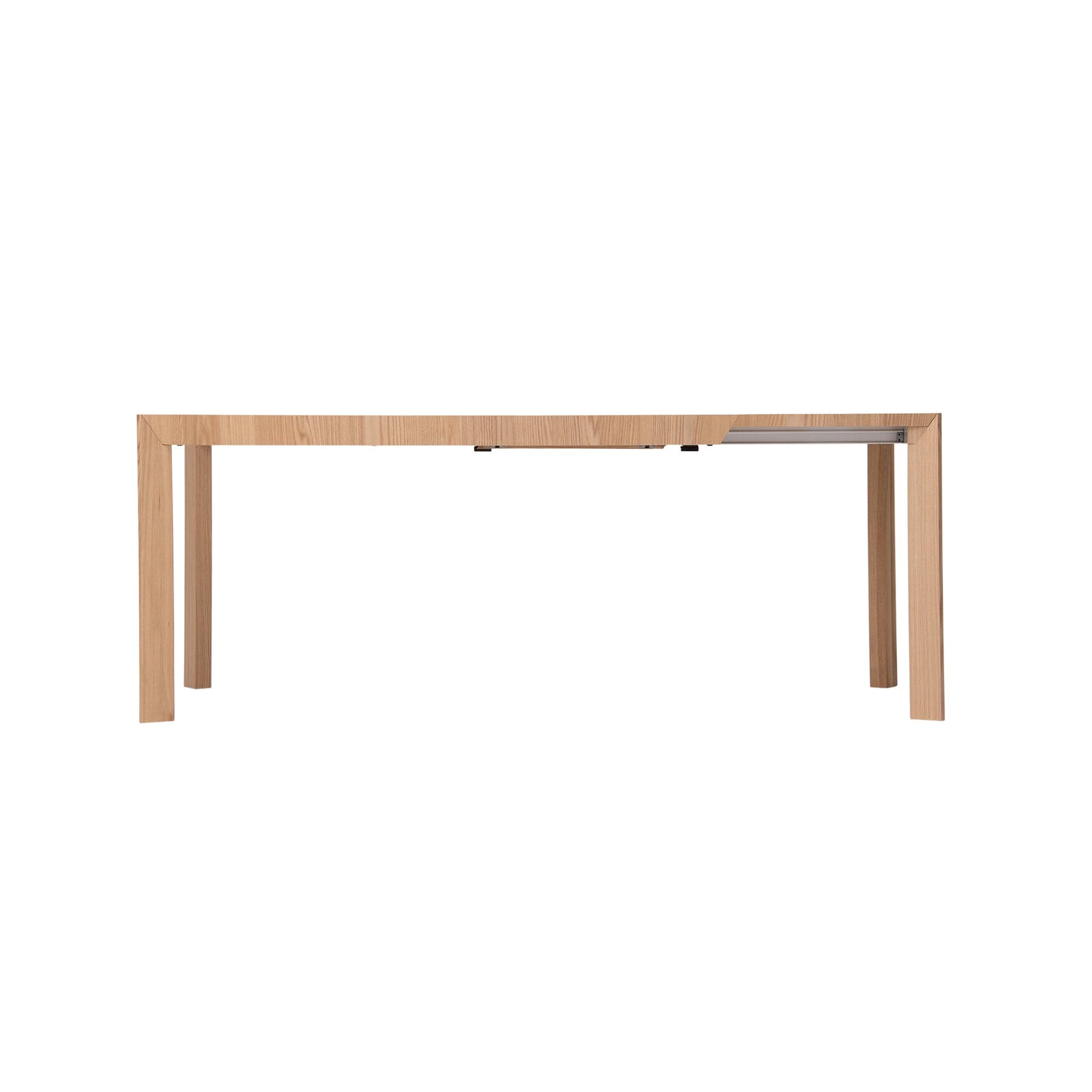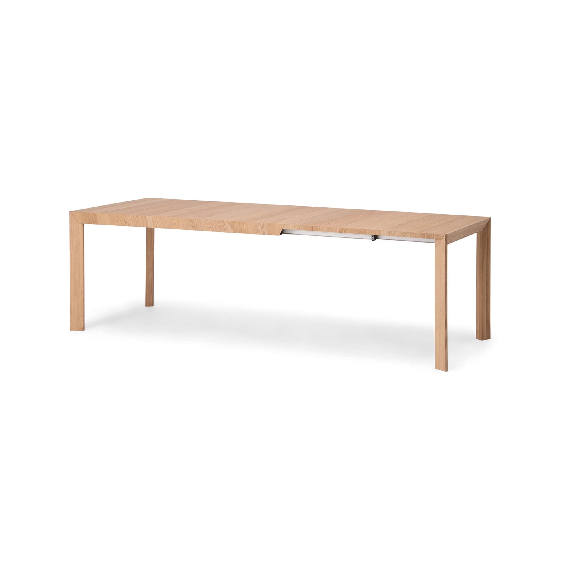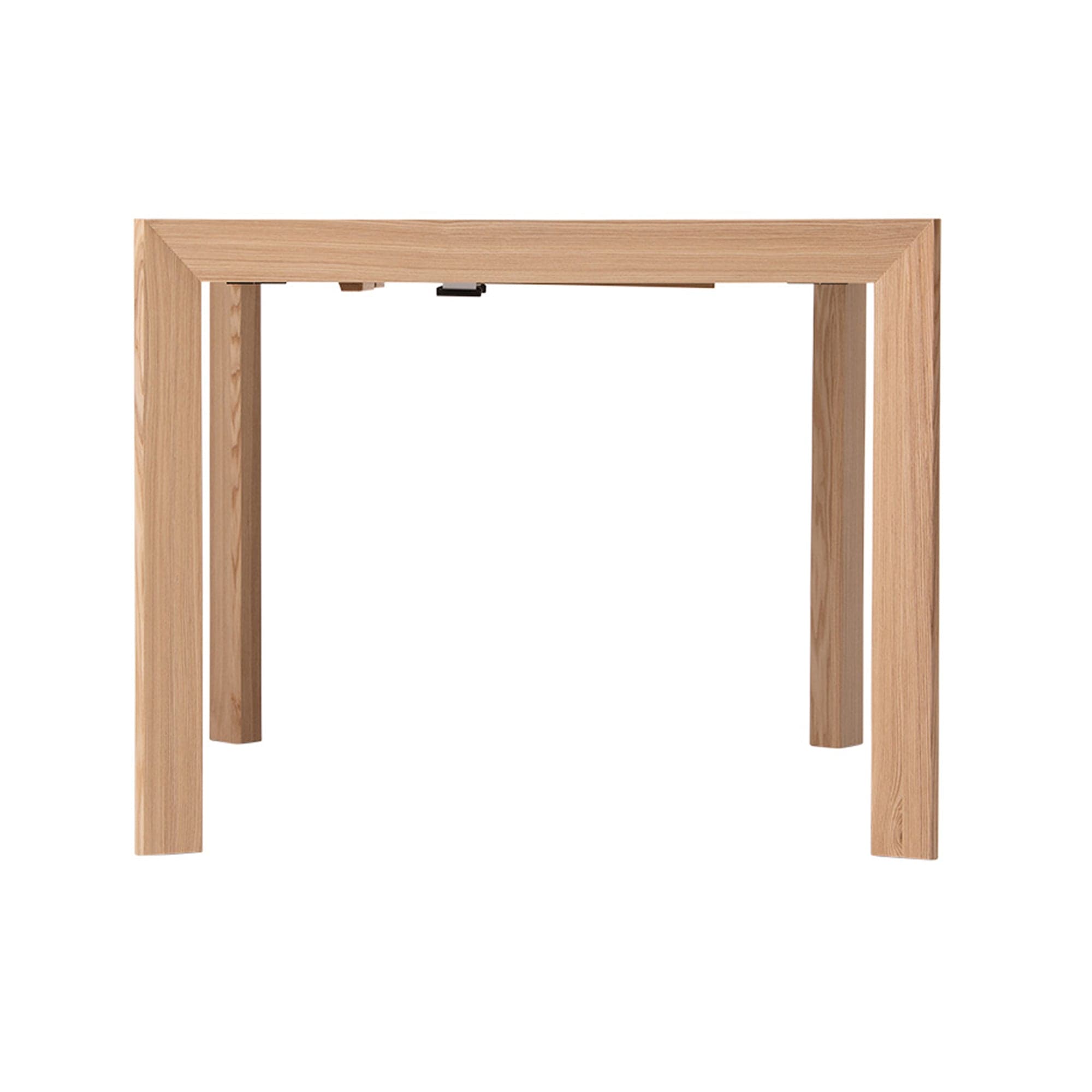 This uniquely designed Moov dining table designed by Toshiyuki Yoshino has an extendable portion that is pulled out from one end of the table via the legs, providing a seamless appearance and user friendly operation. Making full aesthetic use of its veneer wood grain, the top is designed to make the joining crease not stand out. This allows the top to be so smooth that when in its default position, others wouldn’t realize it was an extendable table.