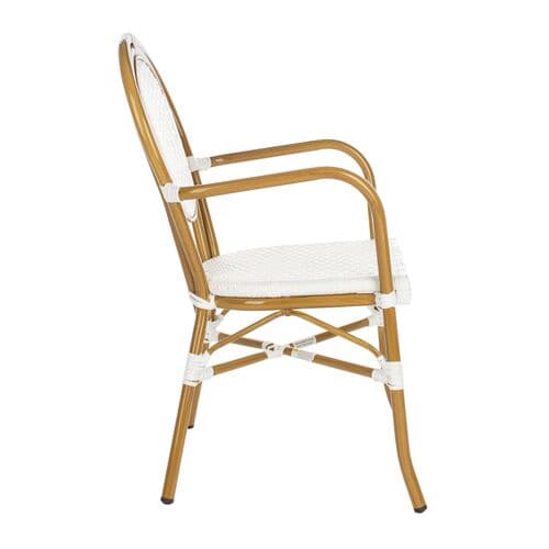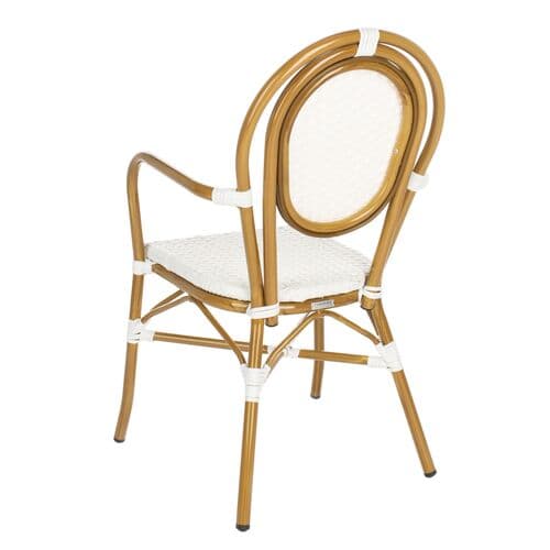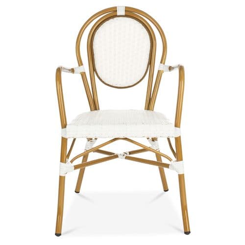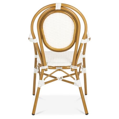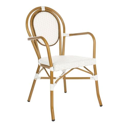 Although you may not be able to visit the Côte d'Azur, you can evoke its relaxed café atmosphere with these armchairs. Crafted from resin wicker and aluminum that mimics bentwood, these chairs are designed to endure the elements for years. Additionally, they can be stacked for convenient storage.