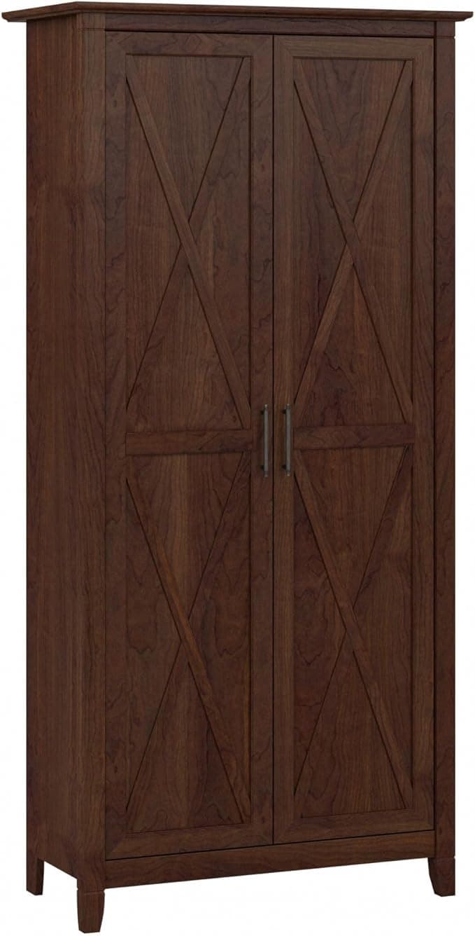 Bush Furniture Key West Tall Storage Cabinet with Doors in Bing Cherry Accent Chest for Home Office, Living Room, Entryway, Kitchen Pantry and More